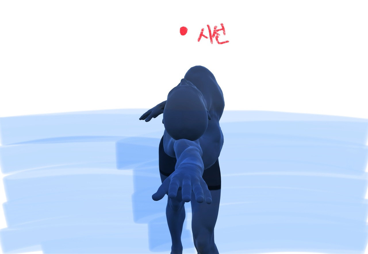 수영장에 가면 첫날에 배우는 음파호흡이에요. 총 3단계로 가르쳐 드릴게요. 3단계에서는 자연스럽게 호흡을 할 수 있어야 해요. [자유형 음파호흡 연습자세 옆에서 보기] 데크홈은 잘 잡히니까