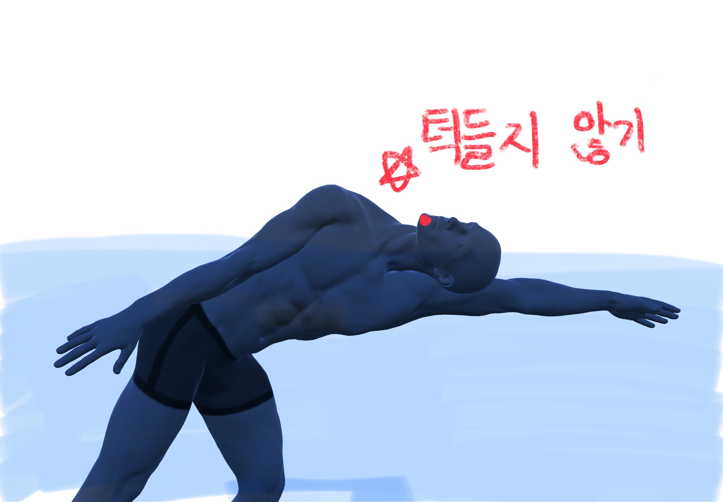 고개를 더 들어서 호흡을 편하게 하고 싶은 마음에
