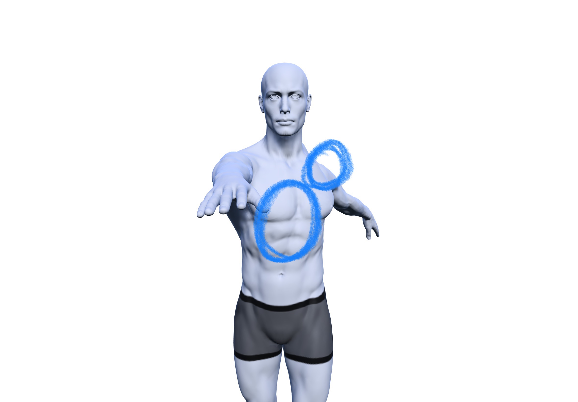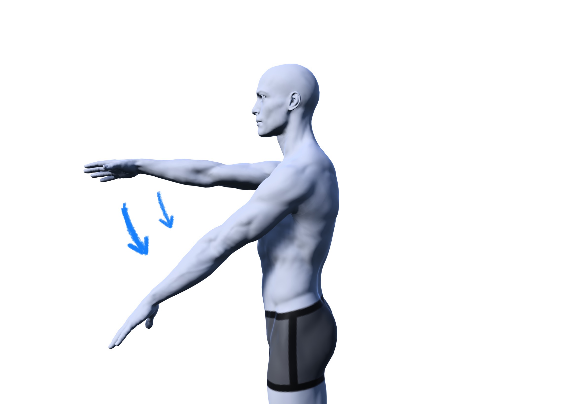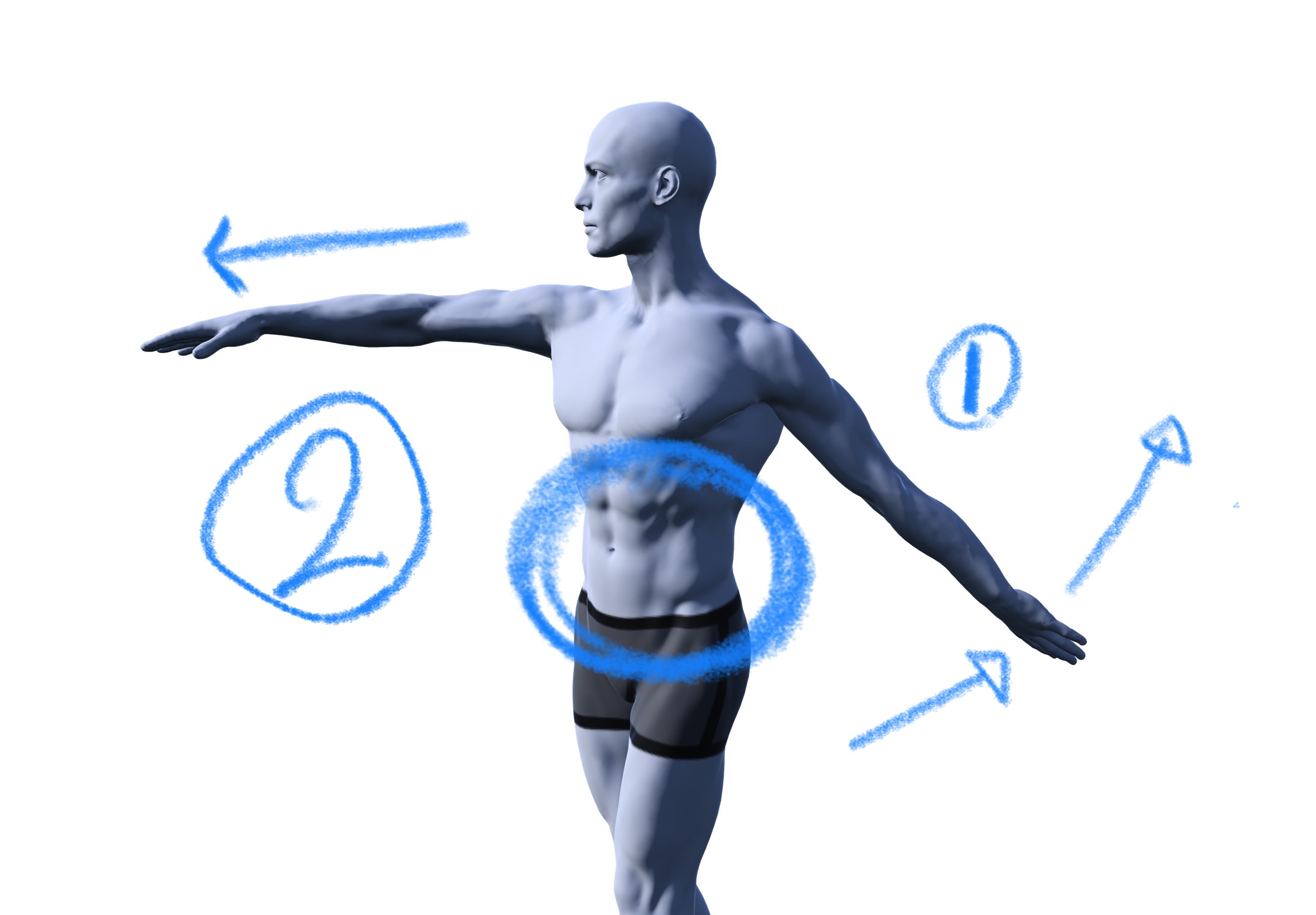 왼팔을 돌리면서 동시에 오른팔을 앞으로