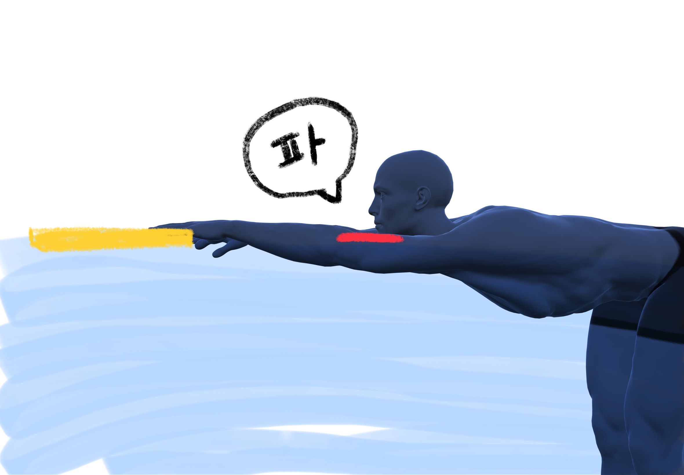 킥판을 잡고 팔을 쭉 펴고 팔은