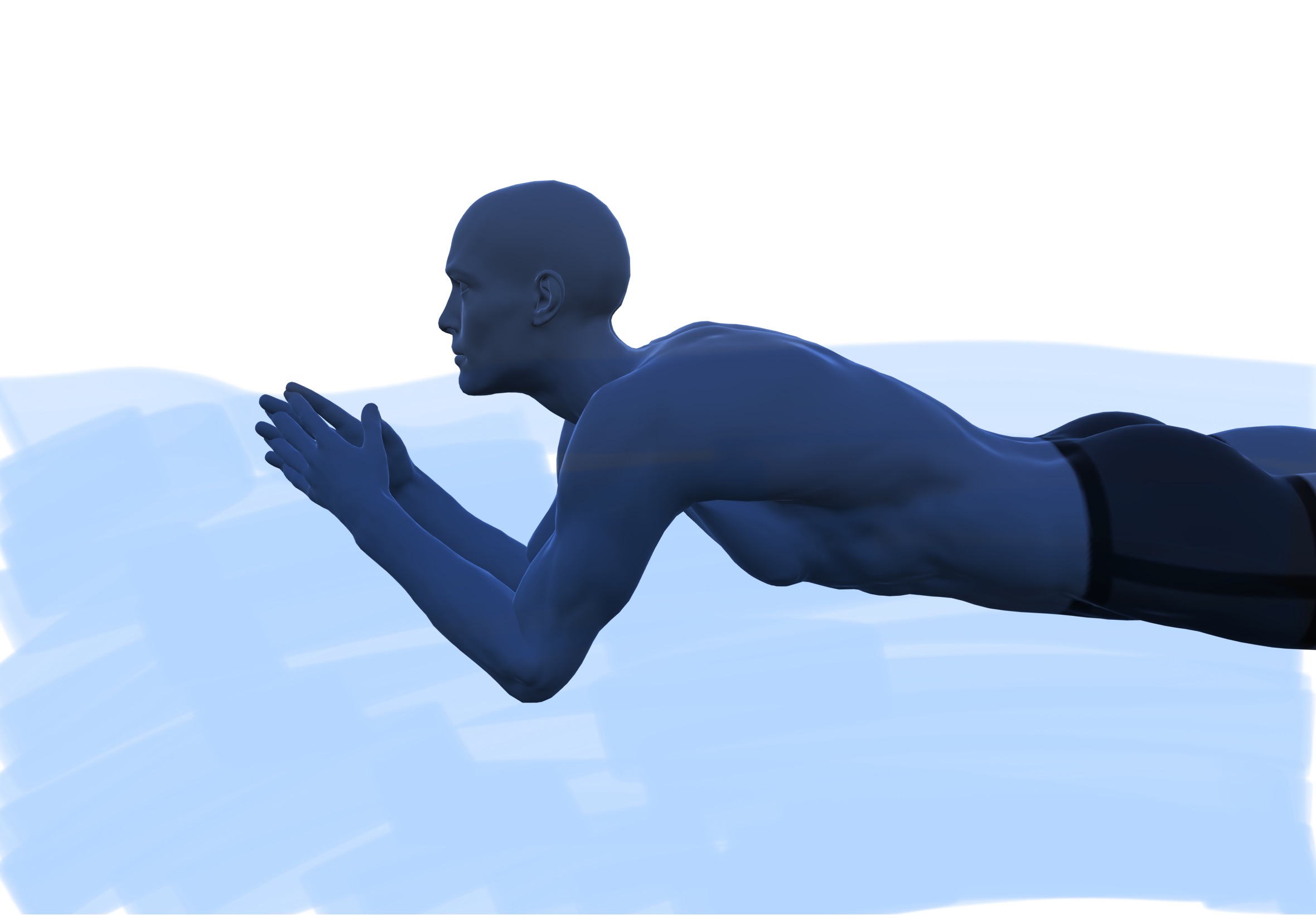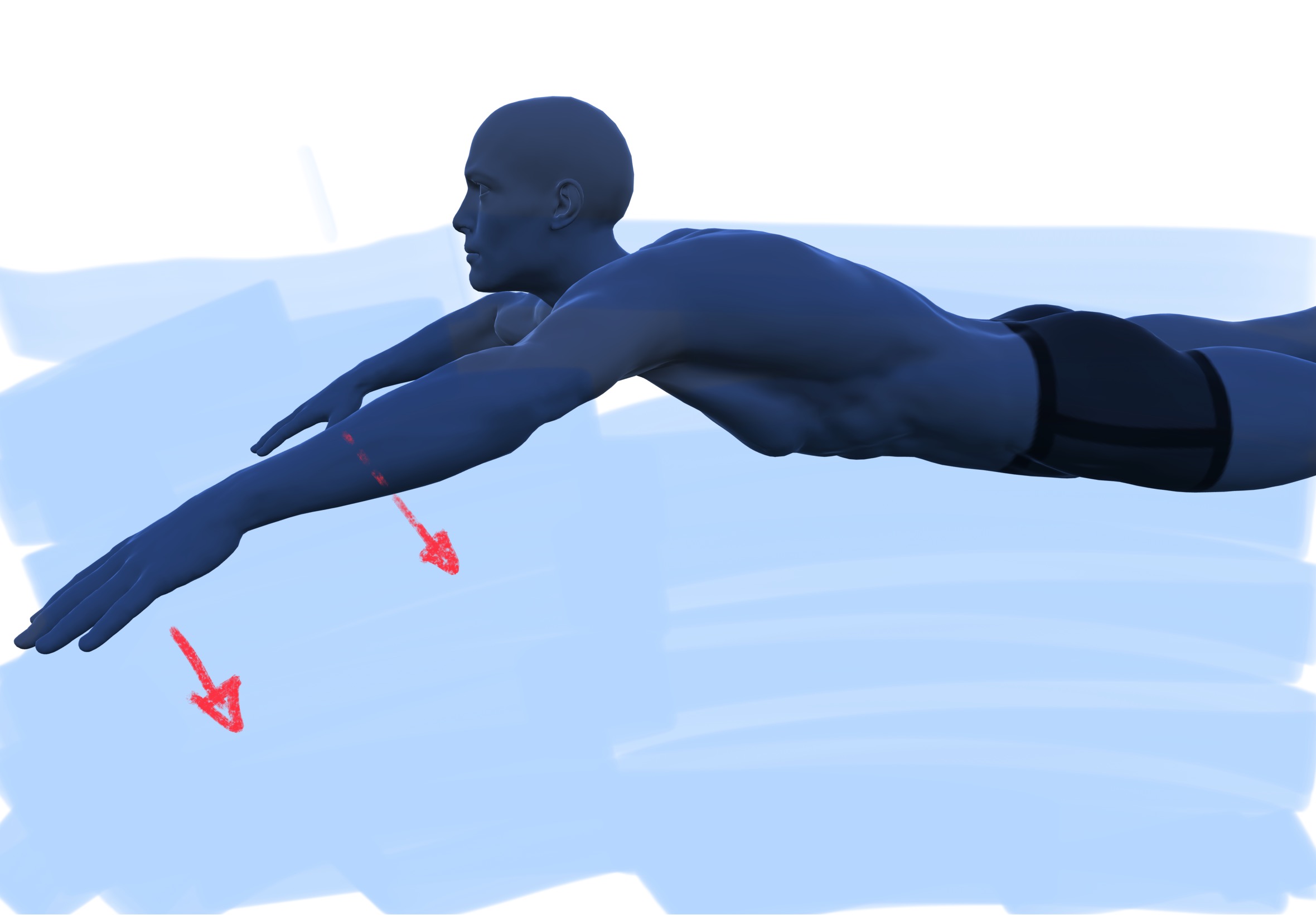 숨을 들이셨으면 물 속으로 들어가면서 손을 앞으로 쭉 뻗어준다.