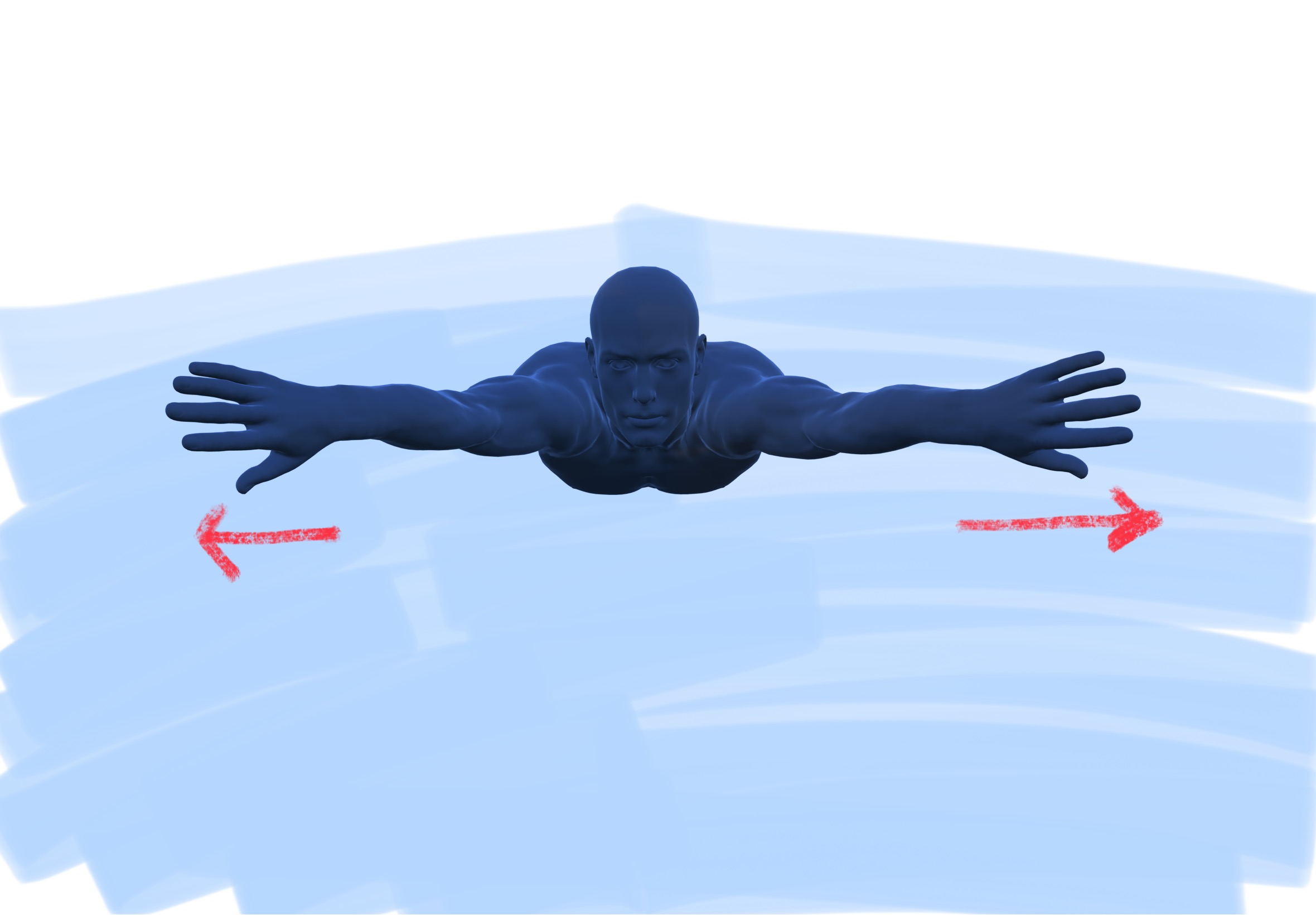 팔을 옆으로 벌리면서 물을 잡아준다.