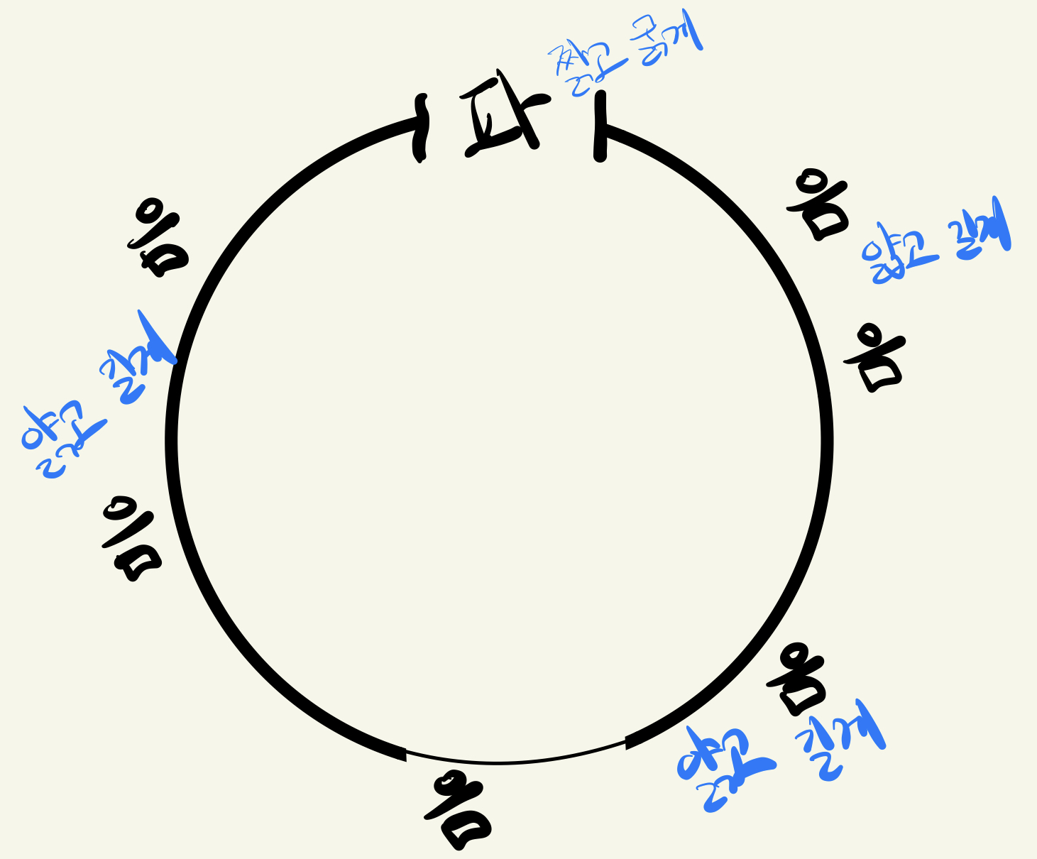 이제는 파(입)와 음(코) 호흡 사이에 쉴 틈 없이 호흡할 거예요.