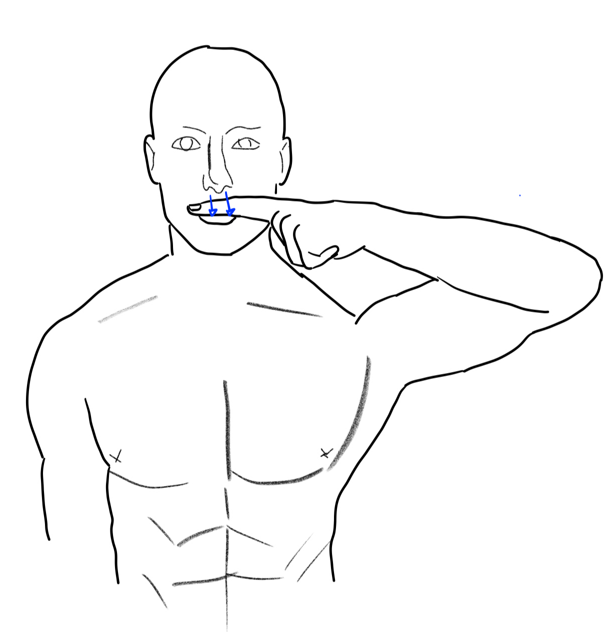 코로 "음"소리 내며 얇고 길게 내쉰다.