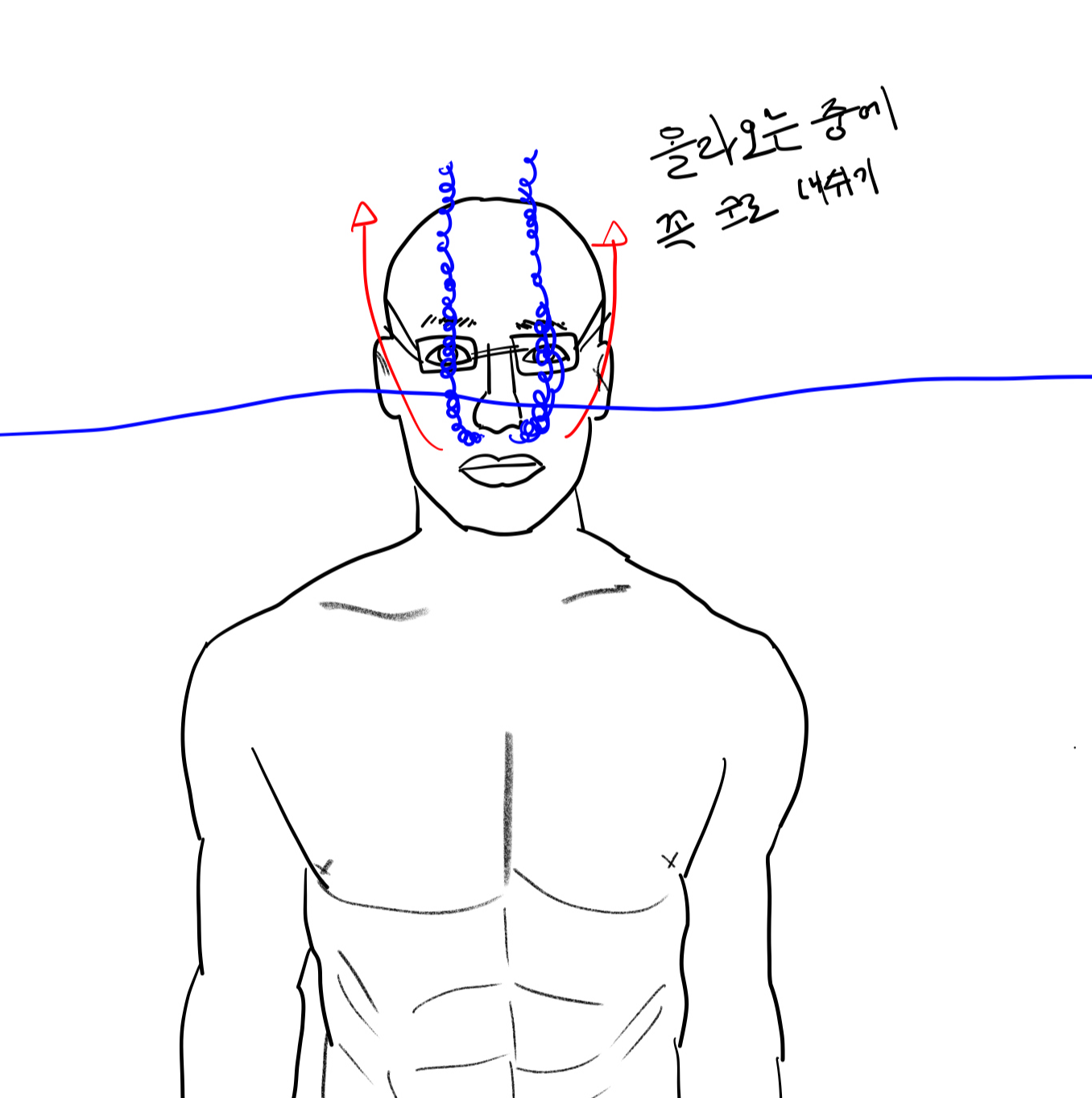 물 위로 코가 올라와도 계속 코로 내쉬다가